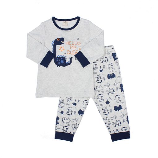 - Bộ quần áo có màu ghi rất thời trang cùng họa tiết chú khủng long ngộ nghĩnh sẽ khiến gu thời trang của bé thật nổi bật và trẻ trung, hiện đại.